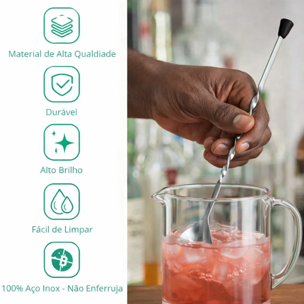 Colher Bailarina Trançada Inox Suco Gin Bartender Coquetel Drink Mixing Glass 29cm