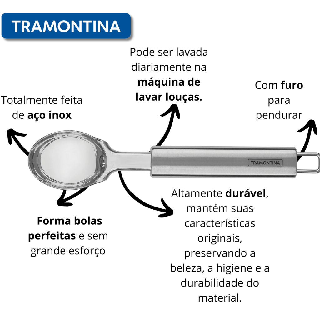 Colher Concha Pegador De Sorvete Inox Bola Profissional Tramontina