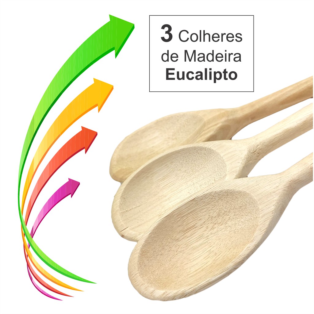 JOGO DE COLHERES DE MADEIRA 3 TAMANHOS Conjunto de 3 colheres de madeira, é bastante durável, tem forma oval e de cor clara, esta colher é perfeita para panelas com teflon pois não arranham. Elas também não esquentam durante a cocção das receitas e são muito fáceis de lavar. Muito mais do que saídas da gaveta da vovó, as colheres de madeira também são indispensáveis na cozinha moderna. Ideais no preparo daquele risoto, para dar o ponto certo no brigadeiro, fazer aquele doce incrível para toda a família ou ate mesmo aquele risoto delicioso para toda a família. Características - Quantidade: 3 unidades (1 Grande, 1 Média e 1 Pequena) - Comprimentos: Grande: 32cm; Média: 26cm; Pequena: 24cm - Quando receber a mercadoria verifique IMEDIATAMENTE, antes de assinar para o Correio. Veja se está tudo certo com o produto se não possui avarias, se está correto o pedido, se não estiver VOCÊ como Destinatário tem todo o direito de recusar a mercadoria sem CUSTO. - Se depois que você recebeu o produto apresentou algum problema de fabricação, NÃO SE PREOCUPE, nos responsabilizamos para fazer a troca o mais rápido possível. Por isso pedimos que não abra reclamação pois esse procedimento pode ser demorado. Entre em contato conosco que de forma ágil vamos solucionar seu problema. - Não esqueça de verificar o tempo determinado de Garantia para que você não perca o prazo caso o produto apresente problemas posteriores. Solicitações feitas após o prazo determinado de garantia não serão atendidas - Acreditamos por nossa experiência que o caminho mais rápido para a resolução de problemas é o campo mensagem. Estaremos sempre dispostos a lhe atender e a resolver eventuais problemas com a entrega, dúvidas ou problemas com o produto. O campo reclamação só deve ser utilizado caso nós como seu VENDEDOR não dermos atenção, não respondermos suas mensagens. - Se você ainda está com dúvidas para fechar a compra, entre em contato enviando sua pergunta. Estamos aqui para atender da melhor forma possível! AGUARDAMOS SUA COMPRA!