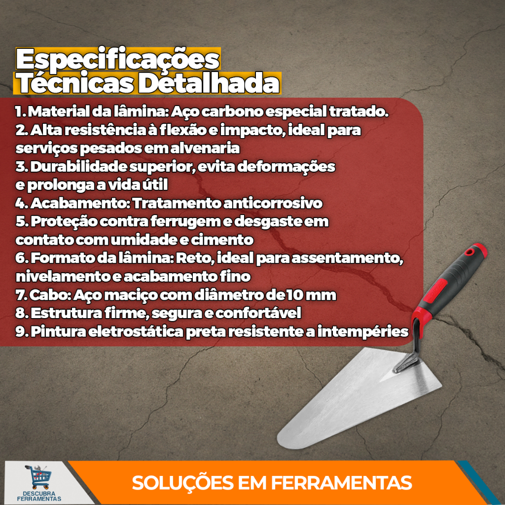 | Colher de Pedreiro Cortag 10 Polegadas Reta Cabo Emborrachado para ... este produto | R$ 37,03 | 29% | 4.9/5 | 9 |