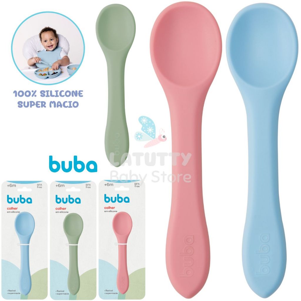 Colher de Silicone Macia para Bebê Buba Alimentação Introdução Alimentar