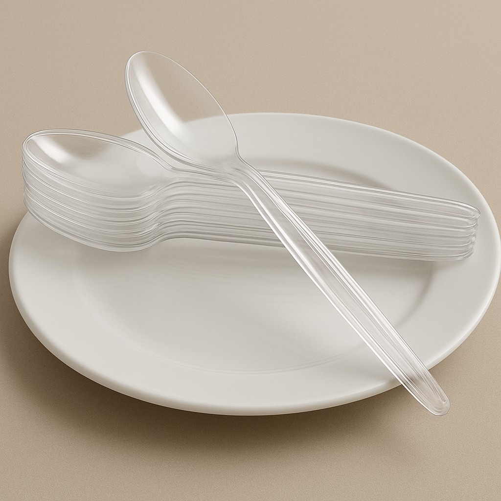 Colher descartavel para refeição cristal kit com 50/100/150/200 unidades