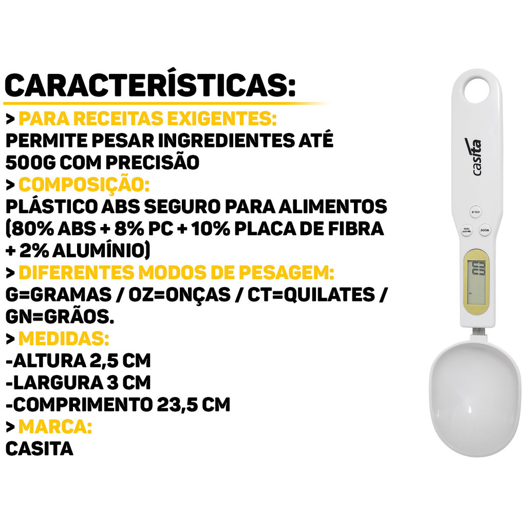 Colher Dosadora Medidor Culinário Com Balança Digital Capacidade 500g P/ Alimentos Temperos Confeitaria