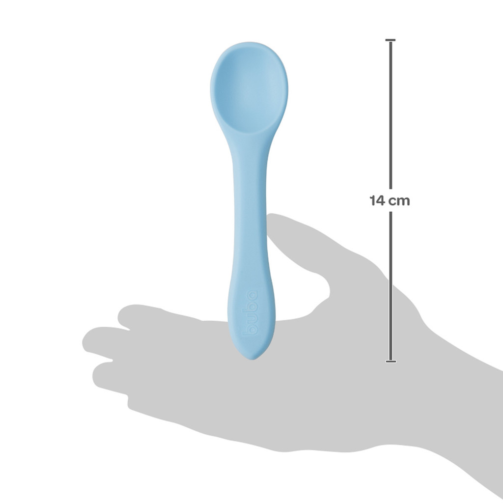 Colher Flexível Azul em Silicone Para Bebês +6 Meses Buba