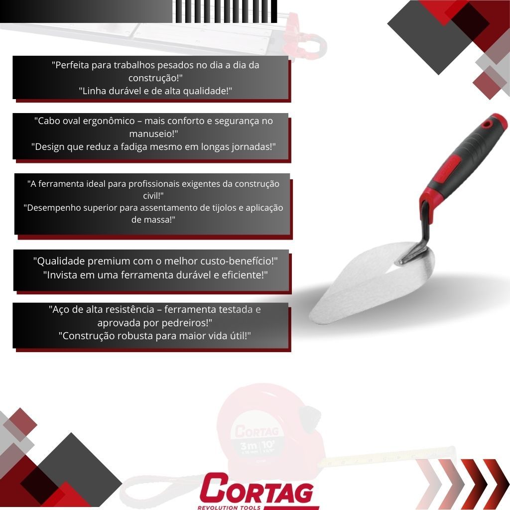 | Colher para Pedreiro Aço Cabo DI Ø10mm Oval 09 Construção Obra Cortag este produto | R$ 44,90 | — | 5.0/5 | — |