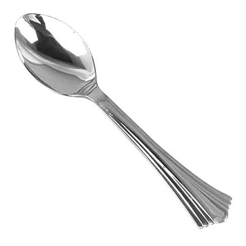 Colher Sobremesa Metalizada Clássica Prata Silver Plastic PCT/10un
