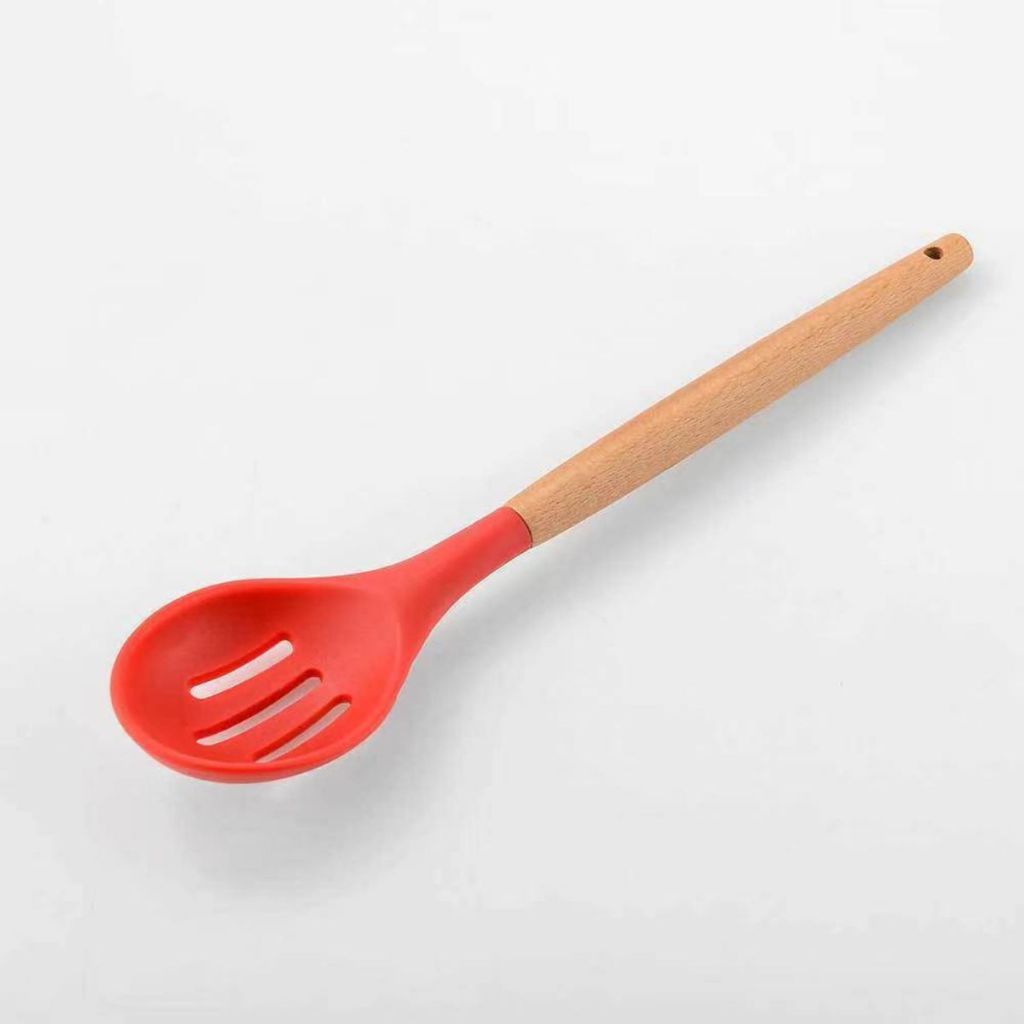 Colher Vazada De Silicone Cabo De Madeira Utensílios de Cozinha