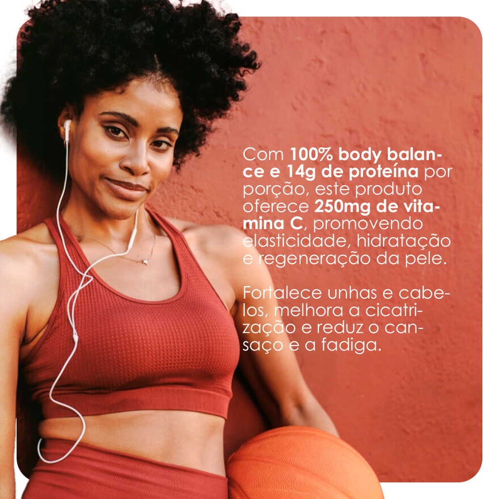 INFORMAÇÕES DE DESTAQUE 100% Body Balance 14g de proteína por porção 250mg de vitamina C Excelente digestibilidade Livre de açúcar, glúten, lactose, aromas artificiais, corantes artificiais e conservantes artificiais DESCRIÇÃO Descubra a fórmula avançada da Essential Nutrition com 100% Body Balance e 14g de proteína por porção, enriquecida com 250mg de vitamina C. Este produto apoia a elasticidade e a hidratação da pele, fortalece unhas e cabelos, e melhora a cicatrização. Sem açúcar, glúten, lactose, aromas, corantes e conservantes artificiais, é ideal para uma digestão eficiente e pode aumentar a absorção de ferro. Experimente e sinta os benefícios de uma nutrição de qualidade. COMPOSIÇÃO Colágeno hidrolisado em peptídeos (BODYBALANCE®) e ascorbato de sódio. NÃO CONTÉM GLÚTEN. ALÉRGICOS: PODE CONTER DERIVADOS DE LEITE. (Pode apresentar traços devido a processos de fabricação.) BODYBALANCE® é uma marca registrada da GELITA AG. SUGESTÃO DE USO Adicione 16,7g (1 colher-medida) em aproximadamente 200ml (1 copo) de água e misture até obter uma solução homogênea. Beba imediatamente após o preparo. Recomenda-se o uso uma vez ao dia ou conforme orientação de um médico ou nutricionista. Mantenha o produto bem fechado em local fresco, seco e ao abrigo da luz solar. Após aberto, consumir em até 60 dias. Este produto é recomendado para adultos (=19 anos). Este produto não é um medicamento. Não exceda a recomendação diária de consumo indicada na embalagem. Mantenha fora do alcance de crianças.