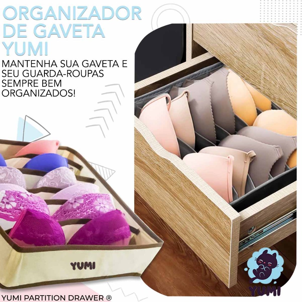 COMPRANDO HOJE ATÉ AS 12HRS (MEIO-DIA) ENVIAMOS NO MESMO DIA*. **Organize suas gavetas com praticidade e estilo!** Você está cansado de procurar suas roupas íntimas, lenços, gravatas, biquínis e outros itens pequenos nas gavetas bagunçadas? Então você precisa do **organizador de gavetas Yumi**! O organizador de gavetas Yumi é um produto feito de material resistente e durável, que possui divisórias para você separar e organizar seus pertences de forma fácil e rápida. Você pode escolher entre diferentes cores e tamanhos, de acordo com a sua necessidade e preferência. O organizador de gavetas Yumi é ideal para otimizar o espaço das suas gavetas, evitar o amassamento e o desgaste das suas roupas, e facilitar a sua rotina. Além disso, o organizador de gavetas Yumi vem com uma garantia de 1 ano, para que você possa ter tranquilidade e confiança em sua compra. Não perca tempo e peça já o seu organizador de gavetas! Você vai se surpreender com a diferença que ele vai fazer na sua vida! Ficha Técnica: Conteúdo: 01 unidade Material: TNT Medidas: 34 x 30 cm Cor: Escolher Sobre o Envio: -*Pedidos com pagamento aprovado até às 12 horas (meio-dia) serão enviados no mesmo dia, exceto aos finais de semana, feriados e emendas de feriados. -Pedidos com o pagamento for aprovado após as 12 horas (meio-dia), finais de semana, feriados e emendas de feriados serão enviados em até 1 dia útil. -IMPORTANTE: (Sempre confira com atenção seu endereço e CEP). -* O prazo de entrega é estimado, podendo variar em caso de acontecimentos imprevisíveis, bem como Greve dos Correios.