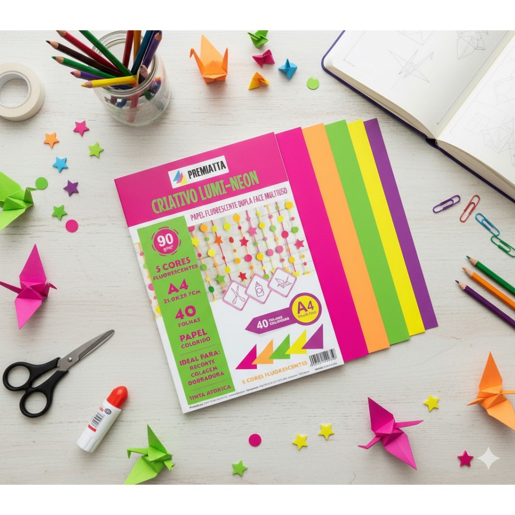 COLOR SET CRIATIVO FLUORESCENTE LUMI-NEON A4 90G (21X29,7) PCT C/40 FOLHAS SENDO 05 CORES SORTIDAS