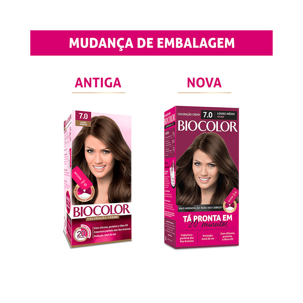 COLORAÇÃO BIOCOLOR LOURO MÉDIO ARRASO 7.0 ========================================= A Coloração Biocolor Louro Médio Arraso 7.0 é ideal para quem deseja mudar a cor dos cabelos de forma prática e segura em casa. Com sua tonalidade Louro Médio, esta coloração não só esconde os fios brancos de maneira uniforme, mas também mantém o cabelo macio e bem hidratado. A fórmula enriquecida com silicone e proteína proporciona uma cobertura perfeita dos cabelos brancos, entregando um resultado impressionante. Alcance uma cor vibrante em apenas 20 minutos, garantindo praticidade para o seu dia a dia. A experiência de coloração Biocolor é rápida e eficaz. COBERTURA COMPLETA DOS FIOS BRANCOS A fórmula enriquecida com silicone e proteína proporciona uma cobertura perfeita dos cabelos brancos, entregando um resultado impressionante. TRANSFORME SEU VISUAL COM FACILIDADE Alcance uma cor vibrante em apenas 20 minutos, garantindo praticidade para o seu dia a dia. A experiência de coloração Biocolor é rápida e eficaz. MODO DE USO =========== A coloração é fácil de aplicar em casa, tornando o processo simples e intuitivo. É Acompanhada de instruções claras para garantir um resultado uniforme e profissional. Misture o creme colorante com a água oxigenada até obter uma mistura homogênea sem grumos. Aplique a mistura no cabelo seco, iniciando pelas raízes, garantindo cobertura total dos fios. Deixe o produto agir por 20 minutos, respeitando o tempo para garantir a coloração ideal e uniforme. Enxágue bem o cabelo, retire todo o produto, e finalize aplicando o tratamento condicionante para hidratar. PREPARAÇÃO DO PRODUTO Misture o creme colorante com a água oxigenada até obter uma mistura homogênea sem grumos. APLICAÇÃO NOS CABELOS Aplique a mistura no cabelo seco, iniciando pelas raízes, garantindo cobertura total dos fios. TEMPO DE AÇÃO Deixe o produto agir por 20 minutos, respeitando o tempo para garantir a coloração ideal e uniforme. ENXÁGUE E FINALIZAÇÃO Enxágue bem o cabelo, retire todo o produto, e finalize aplicando o tratamento condicionante para hidratar. CARACTERÍSTICAS E BENEFÍCIOS DA COLORAÇÃO BIOCOLOR LOURO MÉDIO ARRASO 7.0 ========================================================================= A coloração Biocolor proporciona resultados duradouros com uma cor vibrante que persiste mesmo após várias lavagens. Sua fragrância suave torna a experiência mais agradável e satisfatória. A tecnologia avançada empregada na fórmula aumenta a durabilidade da cor, protegendo contra o desbotamento. Contém ingredientes condicionantes que nutrem e protegem os fios durante todo o processo, preservando a saúde capilar. Ideal para uso doméstico, a coloração vem com instruções claras e precisas, garantindo resultados profissionais. Inclui todos os itens necessários: Creme colorante, revelador e tratamento condicionante em quantidades adequadas. TECNOLOGIA CONTRA DESBOTAMENTO A tecnologia avançada empregada na fórmula aumenta a durabilidade da cor, protegendo contra o desbotamento. FÓRMULA HIDRATANTE Contém ingredientes condicionantes que nutrem e protegem os fios durante todo o processo, preservando a saúde capilar. FACILIDADE DE USO Ideal para uso doméstico, a coloração vem com instruções claras e precisas, garantindo resultados profissionais. EMBALAGEM COMPLETA Inclui todos os itens necessários: Creme colorante, revelador e tratamento condicionante em quantidades adequadas. ESPECIFICAÇÕES TÉCNICAS ======================= Com componentes cuidadosamente selecionados, o produto garante eficácia e segurança máxima na coloração capilar. Tipo: Coloração em creme. Cor: Louro Médio Arraso (código 7.0). Conteúdo: 50g creme colorante; 50ml água oxigenada; 12g tratamento. Tempo de Ação: 20 minutos. Cobertura: Fios brancos com uniformidade. Proteção UV: Sim, presente no produto. SOBRE A MARCA BIOCOLOR ====================== A Biocolor é uma marca de referência no segmento de coloração capilar, reconhecida por seus produtos de qualidade superior e inovação constante. A marca se destaca por oferecer soluções que cuidam da saúde dos cabelos, ao mesmo tempo que proporcionam resultados vibrantes e duradouros. Biocolor utiliza ingredientes de alta qualidade para garantir resultados excepcionais e satisfação do cliente. A marca investe em pesquisa e desenvolvimento, garantindo as melhores fórmulas para coloração capilar. Centenas de clientes satisfeitos corroboram a eficácia e a excelência dos produtos oferecidos pela Biocolor. QUALIDADE COMPROVADA Biocolor utiliza ingredientes de alta qualidade para garantir resultados excepcionais e satisfação do cliente. INOVAÇÃO CONSTANTE A marca investe em pesquisa e desenvolvimento, garantindo as melhores fórmulas para coloração capilar. SATISFAÇÃO DO CLIENTE Centenas de clientes satisfeitos corroboram a eficácia e a excelência dos produtos oferecidos pela Biocolor.
