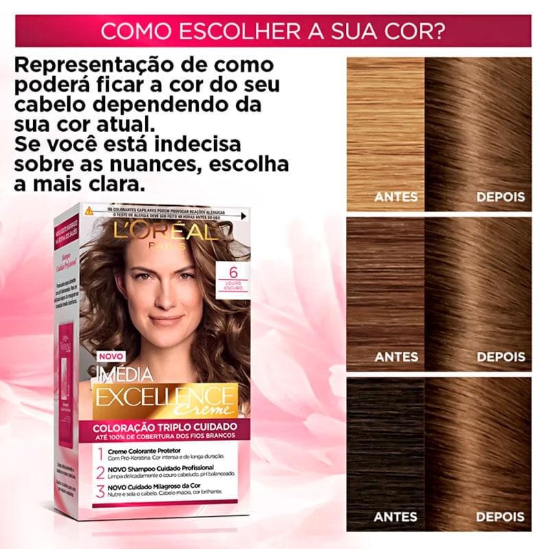 | Coloração Imédia Excellence L'oreal Creme 6 Louro Escuro este produto | R$ 57,49 | — | 5.0/5 | — |
