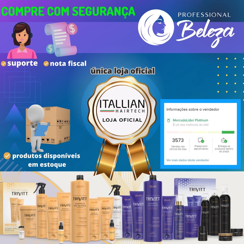Coloração Itallian Color Professional proporciona 100% de cobertura dos brancos com brilho e durabilidade enquanto protege o cabelo durante o uso com emoliência e umectação. Os pigmentos da Coloração Itallian Color Professional são resistentes à luz e às lavagens dos fios, o que garante proteção contra o desbotamento e intensidade até o próximo retoque da raiz. Ativos: Silk PPO: Combinação de ingredientes que inclui a Proteína da Seda, extraída das fibras puras da seda sob condições extremamente controladas. Essas fibras naturais são constituídas por estruturas denominadas fibroínas, que são revestidas de sericina. As fibroínas são ricas em aminoácidos (glicina, alanina, tirosina e serina), que fazem parte da composição da fibra capilar. Brilho acentuadoProporciona umectação e emoliência aos fiosModo de uso: Para cabelo com alto percentual de brancos: Misture 60g de Coloração Itallian Color com 90ml de Itallian Oxi 20 ou 30 Volumes, de acordo com o diagnóstico profissional. Aplique e deixe em pausa por 40 minutos. Para cabelo natural: Misture 60g de Coloração Itallian Color com 90ml de Itallian Oxi 20, 30 ou 40 Volumes, de acordo com o diagnóstico profissional. Aplique sobre os cabelos, deixando em pausa por 35 minutos. Retoque de raiz: Misture 60g de Coloração Itallian Color com 90ml de Itallian Oxi 20, 30 ou 40 Volumes, de acordo com o diagnóstico profissional. Aplique na raiz e deixe agir por 25 minutos. Após esse tempo, aplique o restante da mistura no comprimento e pontas e deixe em pausa por mais 10 minutos. Importante: O tempo total de aplicação não deve ser superior ao indicado. Utilize sempre Itallian Oxi de 20, 30 ou 40 Volumes e siga a proporção recomendada de 1 + 1,5. Escolha a técnica de aplicação e a volumagem do oxidante de acordo com o resultado desejado e com as condições do fio. Nesse ponto, o diagnóstico profissional é essencial. Precaução: Pode causar reação alérgica. Cuidado. Contém substâncias passíveis de causar irritação na pele de determinadas pessoas. Antes de usar, faça a prova de toque com o teste de sensibilidade. Enxágue bem o cabelo após a aplicação. Não use nos cílios, sobrancelhas e buço. A aplicação direta em sobrancelhas ou cílios pode causar irritação nos olhos ou cegueira. Não aplique se o cabelo estiver irritado ou lesionado. Em caso de contato com os olhos, lave imediatamente com água em abundância e, se necessário, procure um médico. Use luvas adequadas. Contém fenilenodiaminas, diaminobenzenos e resorcinol. Contém amônia. Não se recomenda o uso deste produto em gestantes e crianças. Mantenha fora do alcance de crianças. Só para uso profissional. Prova de Toque: Em uma superfície atrás da orelha, faça a aplicação da mistura com a coloração permanente + Itallian Oxi na proporção recomendada nas instruções de uso. Deixe por um período igual ao tempo de pausa e lave o local. Se não houver reação visível durante 24 horas, proceda à aplicação do produto. CORES: NATURAIS (1 + 1,5) 01. PRETO (1.0) 03. CASTANHO ESCURO (3.0) 04. CASTANHO (4.0) 05. CASTANHO CLARO (5.0) 06. LOURO ESCURO (6.0) 07. LOURO (7.0) 08. LOURO CLARO (8.0) 09. LOURO CLARÍSSIMO (9.0) 10. LOURO PLATINA (10.0) NATURAL PLUS (1 + 1,5) (REFLEXO MAIS INTENSO) 4.00 CASTANHO PLUS (4.00) 5.00 CASTANHO CLARO PLUS (5.00) 6.00 LOURO ESCURO PLUS (6.00) 7.00 LOURO PLUS (7.00) 8.00 LOURO CLARO PLUS (8.00) CINZAS (1 + 1,5) NB. PRETO AZULADO (2.1) 14. CASTANHO CINZA (4.1) 15. CASTANHO CLARO CINZA (5.1) 16. LOURO ESCURO CINZA (6.1) 17. LOURO CINZA (7.1) 18. LOURO CLARO CINZA ( 8.1) 19. LOURO CLARÍSSIMO CINZA (9.1) 811. LOURO CLARO CINZA INTENSO (8.11) 10.01. LOURO PLATINA NATURAL CINZA (10.01) (UC1) DOURADOS (1 + 1,5) 25. CASTANHO CLARO DOURADO (5.3) 26. LOURO ESCURO DOURADO (6.3) 27. LOURO DOURADO (7.3) 28. LOURO CLARO DOURADO (8.3) 29. LOURO CLARÍSSIMO DOURADO (9.3) BEGE (1 + 1,5) 613. LOURO ESCURO BEGE ACINZENTADO (6.13) 631. LOURO ESCURO DOURADO CINZA (6.31) 17A. LOURO CINZA DOURADO (7.13) 813. LOURO CLARO BEGE ACINZENTADO (8.13) 913. LOURO CLARÍSSIMO CINZA DOURADO (9.13) (540) 731. LOURO BEGE DOURADO (7.31) 831. LOURO CLARO DOURADO CINZA (8.31) 931. LOURO CLARÍSSIMO DOURADO CINZA (9.31) MARRON FRIO (1 + 1,5) 517. CASTANHO CLARO CINZA MARROM (5.17) 617. LOURO ESCURO CINZA MARROM (6.17) 717. LOURO CINZA MARROM (7.17) 817. LOURO CLARO CINZA MARROM (8.17) 917. LOURO CLARÍSSIMO CINZA MARROM (9.17) MARRON QUENTE (1 + 1,5) 541. CASTANHO CLARO COBRE CINZA (5.41) 641. LOURO ESCURO COBRE CINZA (6.41) 57. CASTANHO CLARO MARROM (5.7) 67. LOURO ESCURO MARROM (6.7) 77. LOURO MARROM (7.7) 677. LOURO ESCURO MARROM INTENSO (6.77) PÉROLA (1 + 1,5) 789. LOURO PÉROLA (7.89) 889. LOURO CLARO PÉROLA (8.89) 989. LOURO CLARÍSSIMO PÉROLA (9.89) VERMELHOS (1 + 1,5) 660. LOURO ESCURO VERMELHO NATURAL (6.60) 562. CASTANHO CLARO VERMELHO VIOLETA (5.62) 662. LOURO ESCURO VERMELHO VIOLETA (6.62) 766. LOURO VERMELHO INTENSO (7.66) 666. LOURO ESCURO VERMELHO INTENSO (6.66) COBRE (1 + 1,5) 534. CASTANHO CLARO DOURADO