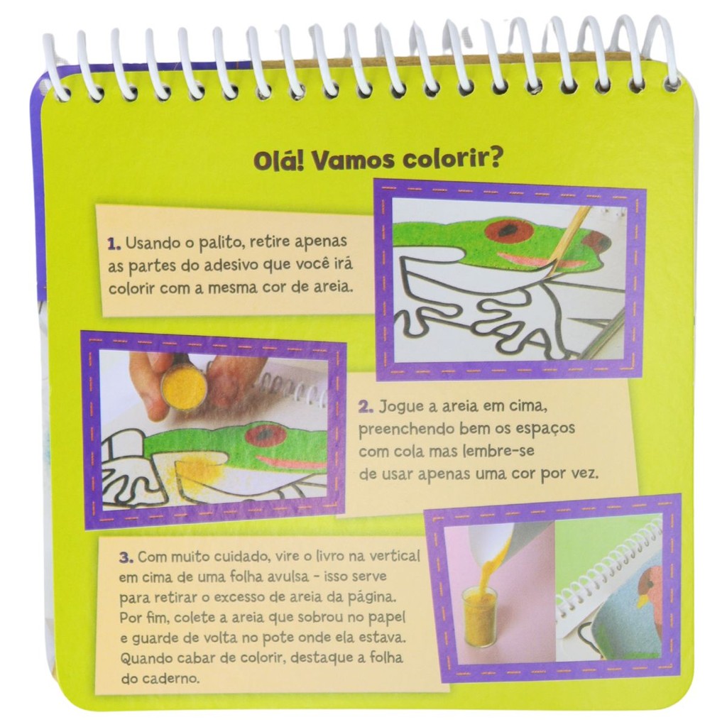 DESCRIÇÃO DO PRODUTO Uma maneira mais divertida para colorir! Jogando a areia sobre o papel adesivo, os animais vão ganhando cor e texturinha. CARACTERÍSTICAS TÉCNICAS: Conteúdo da Embalagem: 1 livro com 6 páginas, 6 cores de areia, 1 palito Dimensões Aproximadas do Produto: 15 cm x 14 cm x 1 cm (Altura x Largura x Comprimento/Profundidade). Dimensões Aproximadas da Embalagem: 18 cm x 15 cm x 3 cm (Altura x Largura x Comprimento/Profundidade). Material/Composição: Papel, Papel cartão, papel adesivo, PVC, arei atóxica, acrílico e palito de bambu Idade Mínima Recomendada: A partir de 6 anos Participantes: A partir de 1 pessoa Alimentação: Não se aplica Marca: Toyster Referência: 3199 Outras informações: As cores podem variar entre as imagens mostradas acima e o produto. Imagens meramente ilustrativas. Aviso: As informações e imagens divulgadas são de total responsabilidade do fabricante/fornecedor. Produto lacrado e disponível a pronta entrega para todo Brasil! APROVADO PELO INMETRO