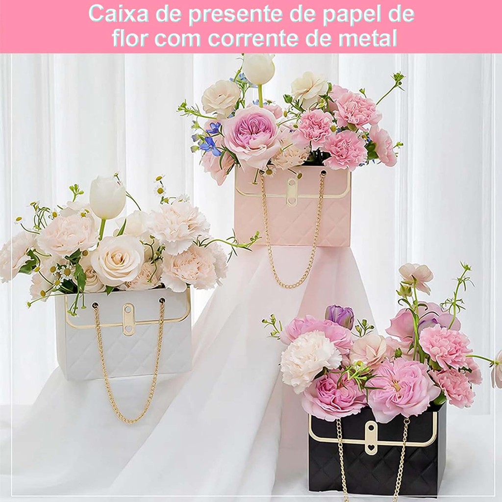 Material do produto: feito de papel, com corrente de metal Lista de produtos branco x4, rosa x4, Preto) Tamanho do produto: 15 × 10 × 10,5 cm Descrição do Produto: Sacos de presente de flores: Sacos de papel de presente são projetados para flores. Você pode colocar várias flores nas sacolas de presente. São lindos. Espaço de Armazenamento Amplo: O tamanho do saco de embalagem de flores é de aproximadamente 15x10x10,5 cm, que é grande o suficiente para deixar você fazer suas próprias bolsas à vontade, tornando seu presente mais atraente. Design moderno moderno moderno: As bolsas de presente de flores têm um design retangular e uma corrente de metal. O design da alça de corrente dupla fornece mais praticidade e facilidade de transporte. Capacidade de carga forte, não é fácil de quebrar, toque macio, boa textura, capacidade de carga nobre e elegante, não é fácil de quebrar, toque macio, boa textura, nobre e elegante. Amplamente útil: novas bolsas de embalagens de flores podem ser usadas muito em várias ocasiões, como dia dos namorados, casamento, dia das mães, festa de aniversário, cerimônia de formatura, etc. Também pode ser dado como presente para amigos e família.