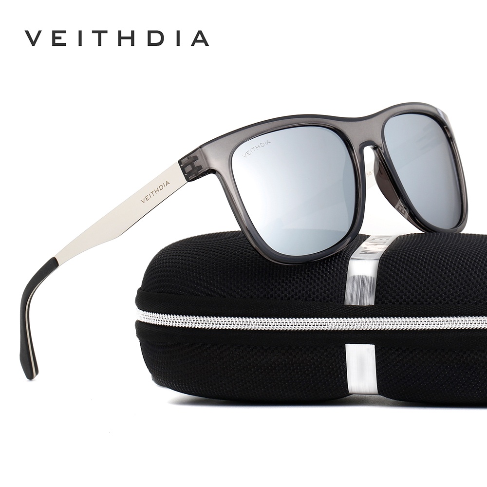 [Com Caixa] VEITHDIA 6110 Óculos De Sol Polarizados Masculinos E Femininos De Aço Inoxidável + Armação retro Quadrada TR90 Lentes UV400 Esportivas Dirigindo Pala Solar De Pesca