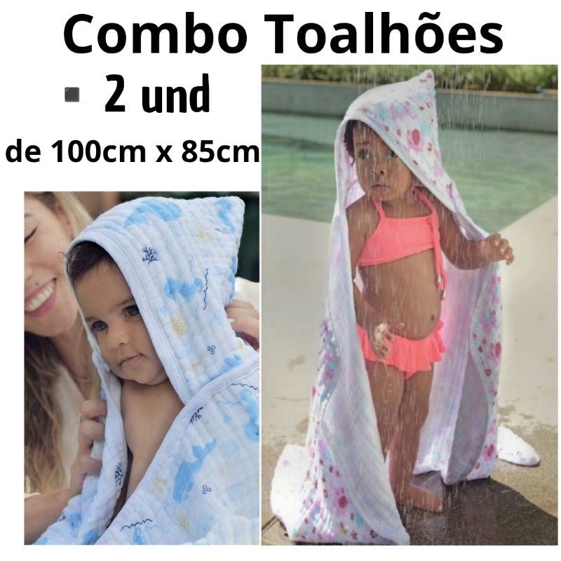 | Combo 2 Toalhões de bebê Dengo, 100cm x 85cm, 3 camadas. este produto | R$ 100,90 | — | 5.0/5 | 37 |