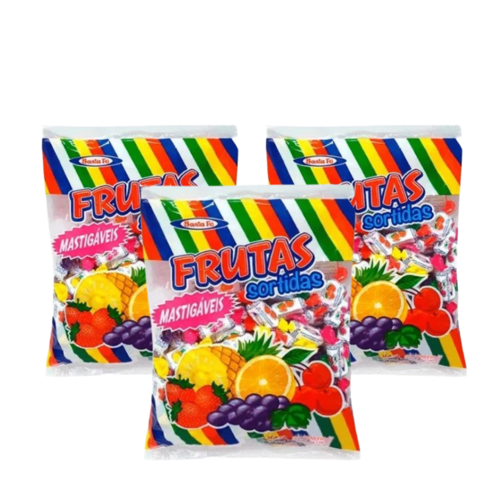 Combo 3 Pacotes Bala Mastigável Sortidas Santa Fé 500g