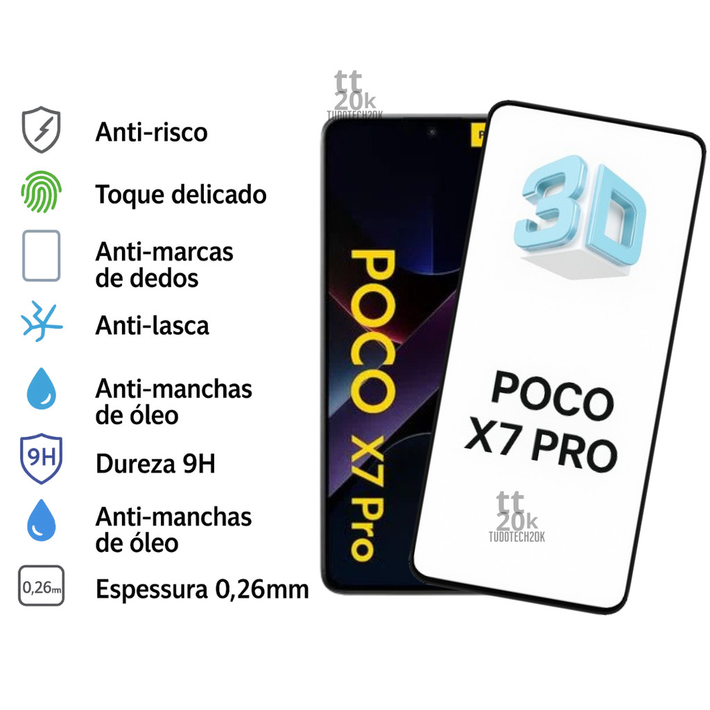 Combo 3 Peliculas Poco X7 Pro Frontal Completa Vidro 3d Temperado Kit Aplicação Envio Imediato