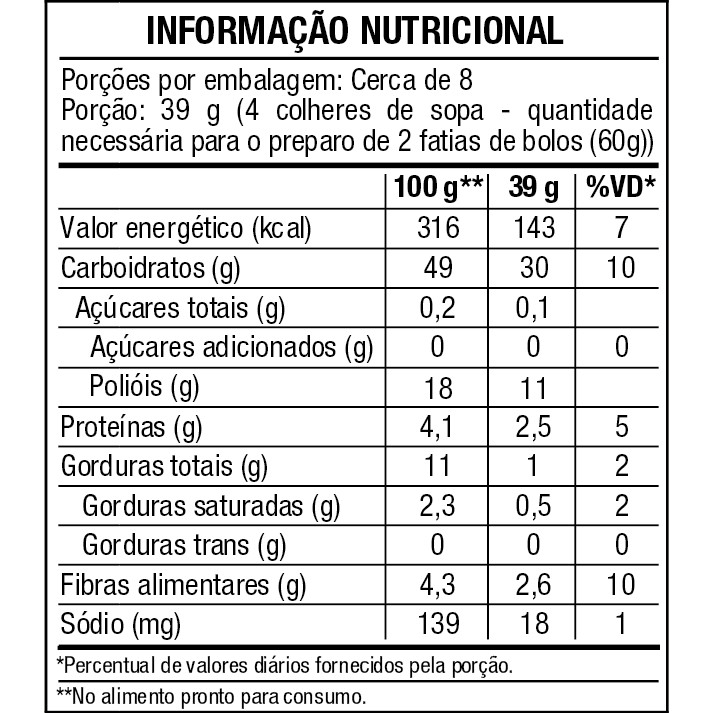 Combo de Bolos Sem Glúten Vitao – Chocolate, Fubá e Laranja. Praticidade, sabor e textura perfeita para quem busca praticidade na cozinha sem abrir mão do sabor caseiro. Com preparo rápido e simples, você garante bolos macios, fofinhos e deliciosos em poucos minutos. Sem glúten: Ideal para dietas restritivas e alimentação equilibrada 3 sabores irresistíveis: Chocolate, fubá e laranja Fácil e rápido de preparar: Mistura pronta, basta adicionar poucos ingredientes Textura perfeita: Bolos macios, leves e fofinhos Sabor caseiro: Qualidade Vitao com resultado profissional Praticidade no dia a dia: Economize tempo na cozinha sem abrir mão do sabor Ótimo custo-benefício: Mais variedade em um único kit BOLO CHOCOLATE: INGREDIENTES: Farinha de arroz, cacau em pó, féculas de batata e mandioca, amido, psyllium, amido modificado, sal hipossódico, edulcorante maltitol, sucralose e glicosídeos de esteviol, emulsificantes ésteres de ácidos graxos com poliglicerol, ésteres de mono e diglicerídeos com ácidos graxos e polisorbato 80, espessante goma xantana e aromas. ALÉRGICOS: PODE CONTER AMÊNDOA, AVEIA (SEM GLÚTEN), SOJA, CASTANHA-DE-CAJU E CASTANHA-DO-PARÁ. NÃO CONTÉM GLUTEN. SEM GLÚTEN, VEGANO, ZERO ADIÇÃO DE AÇÚCARES, FONTE DE FIBRAS. BOLO FUBÁ: INGREDIENTES: Fubá, farinha de arroz, féculas de batata e mandioca, amido, psyllium, sal hipossódico, edulcorante maltitol, sucralose e esteviosídio, emulsificantes ésteres de ácidos graxos com poliglicerol, ésteres de mono e diglicerídeos com ácidos graxos e polisorbato 80 e espessante goma xantana. ALÉRGICOS: PODE CONTER AMÊNDOA, AVEIA (SEM GLÚTEN), SOJA, CASTANHA-DE-CAJU E CASTANHA-DO-PARÁ. NÃO CONTEM GLÚTEN. SEM GLÚTEN, ZERO ADIÇÃO DE AÇÚCARES, VEGANO. BOLO LARANJA: INGREDIENTES: Farinha de arroz, féculas de batata e mandioca, amido, flocos de laranja, psyllium, amido modificado, sal hipossódico, edulcorantes maltitol, sucralose e glicosídeos de esteviol, emulsificantes ésteres de ácidos graxos com poliglicerol, ésteres de mono e diglicerídeos com ácidos graxos e polisorbato 80, aroma e espessante goma xantana. ALÉRGICOS: PODE CONTER AMÊNDOA, AVEIA (SEM GLÚTEN), SOJA, CASTANHA-DE-CAJU E CASTANHA-DO-PARÁ. NÃO CONTEM GLÚTEN. SEM GLÚTEN, VEGANO, ZERO ADIÇÃO DE AÇÚCARES.