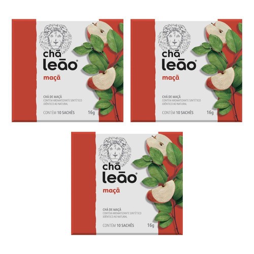 Combo Chá Leão Maçã 3 Caixas 30 Sachês