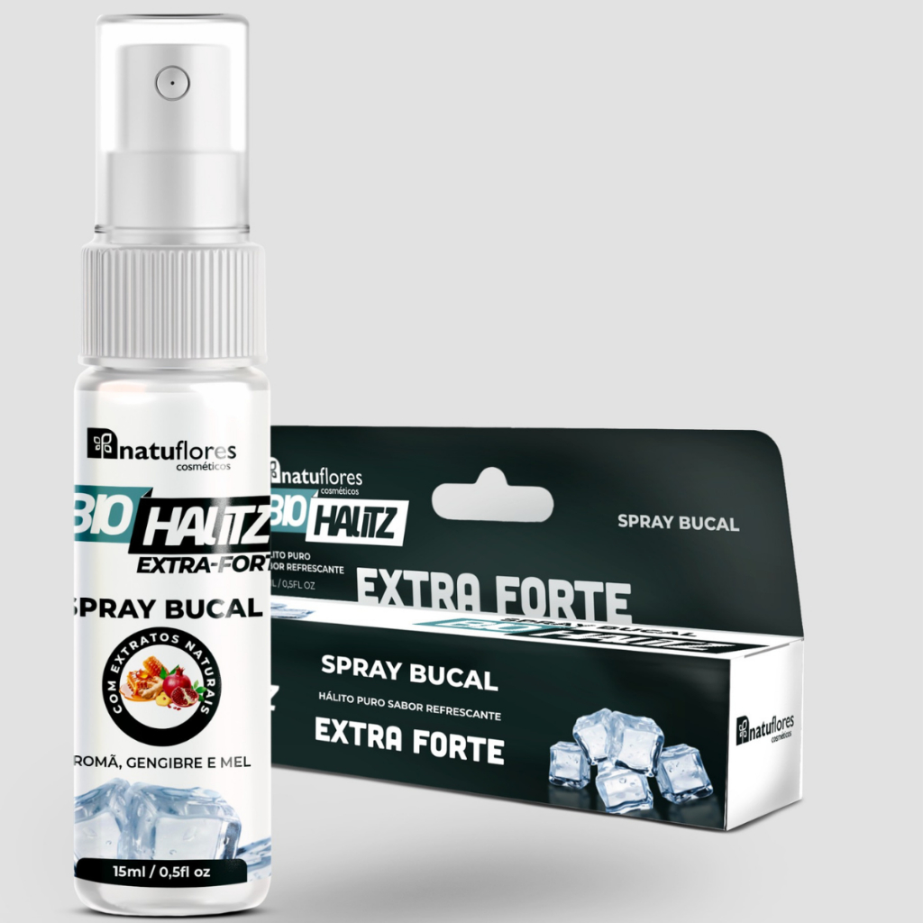 🌿 Refresque o hálito com praticidade e frescor duradouro! O Bio Halit’z Spray Bucal é o seu aliado para manter o hálito fresco em qualquer momento do dia. Sua fórmula combina extratos naturais de mel, romã e gengibre, com ação antisséptica, ajudando a eliminar bactérias causadoras do mau hálito e deixando uma sensação de limpeza e confiança instantânea. Disponível em sabores sortidos: 💙 Menta – refrescância intensa 🍓 Morango – sabor suave e agradável 💨 Extra Forte – frescor prolongado e marcante Cada frasco contém 18ml, ideal para carregar no bolso, bolsa ou carro e usar quando quiser renovar o hálito. 💧 Benefícios Principais ✅ Elimina o mau hálito instantaneamente ✅ Fórmula com extratos naturais ✅ Ação antisséptica e refrescante ✅ Compacto e prático para levar onde quiser ✅ Registro na ANVISA – segurança garantida 📦 Informações do Produto Categoria: Aromatizante Bucal – Grau 1 Conteúdo: 18ml por unidade Validade: 3 anos Registro ANVISA: Extra Forte: 25351.089049/2025-19 Morango: 25351.088879/2025-11 Menta: 25351.089060/2025-71 Fabricante: Natuflores Indústria e Comércio de Cosméticos LTDA Indicação: Adultos Precauções: Evitar contato com os olhos e manter fora do alcance de crianças. 💙 Modo de Uso Borrife 1 a 2 vezes diretamente na boca e sinta o frescor imediato. Use após refeições, antes de reuniões ou quando quiser renovar o hálito.
