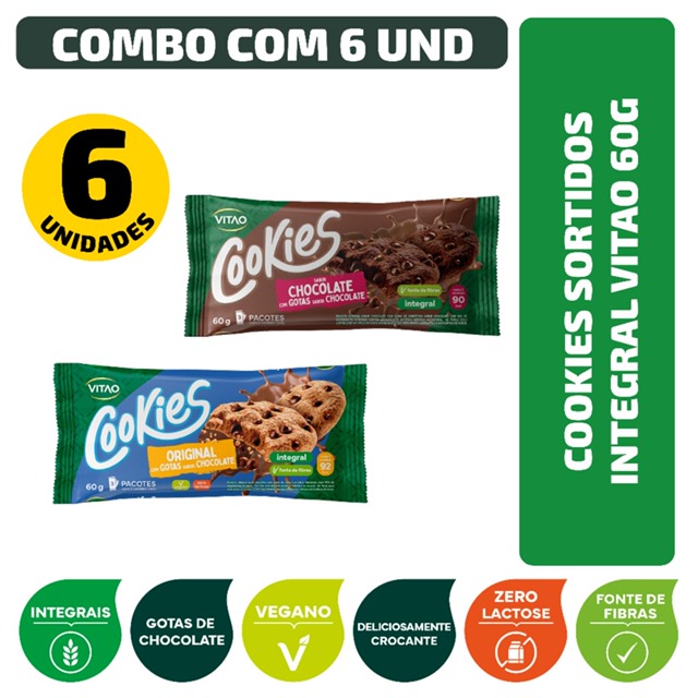 | Combo Cookies Sortidos Integral Vitao 60g - 6 Unidades este produto | R$ 33,53 | 30% | 4.9/5 | 8 |