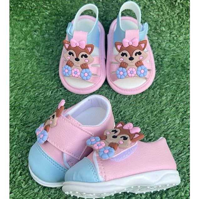 Combo Estilo Menina Recem Nascido Rapozinha Tenis+Sandalia Confortavel