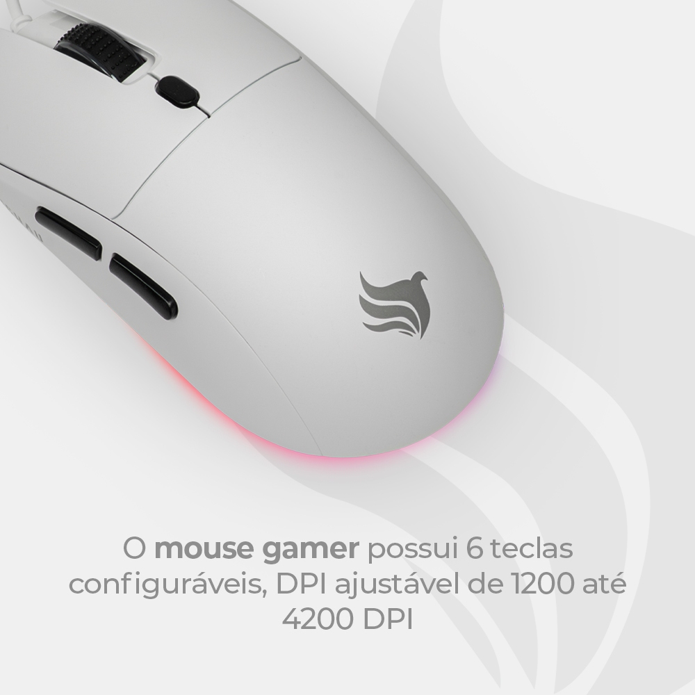 Combo Gamer Pichau Netuno V2 4x1: Teclado Mecânico ABNT2 Mouse 4200DPI Mousepad Headset 50mm, Branco