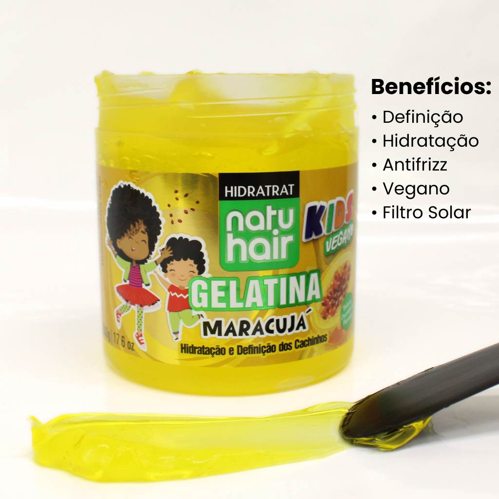 Kit Gelatina Vegano Kids Uva + Melancia + Maracujá Natuhair 500g A Gelatina NatuHair SOS Kids é ideal para definir e hidratar os cachinhos Kids. Chegou para deixar os cabelinhos das crianças lindos, hidratados e super bem cuidados. MODO DE USAR: Com os cabelos limpos e úmidos, aplique uma quantidade entre 30g a 50g de Gelatina NatuHair Kids Uva mecha a mecha, uniformemente, no comprimento e pontas. Desembarace os fios com um pente de dentes largos e, em seguida, amasse-os iniciando o movimento das pontas até a raiz. A aplicação ideal dependerá da quantidade e do comprimento dos fios. Não enxágue. Dicas de uso: Experimente misturar a Gelatina NatuHair Kids com o Creme para Pentear NatuHair Kids para melhores resultados. Composição Português: Água, Glicerol, Carbômer, Trietanolamina, PEG-90M, Propileno Glicol, Poli Vinil Pirrolidona, Óleo da Semente de Uva, Fenoxietanol, Óleo de Rícino Hidrogenado PEG-40, Perfume, Diazolidinil Ureia, Gliconato de Sódio, Butilcarbamato de Iodopropinila, Corante Vermelho Amaranto 16185, Corante Azul Brilhante 42090, Sulfato de Sódio. Composição Inglês: Aqua, Glycerin, Carbomer, Triethanolamine, PEG-90M, Propylene Glycol, PVP, Vitis Vinifera Seed Oil, Phenoxyethanol, PEG-40 Hydrogenated Castor Oil, Parfum, Diazolidinyl Urea, Sodium Gluconate, Iodopropynyl Butylcarbamate, CI 16185, CI 42090, Sodium Sulfate.