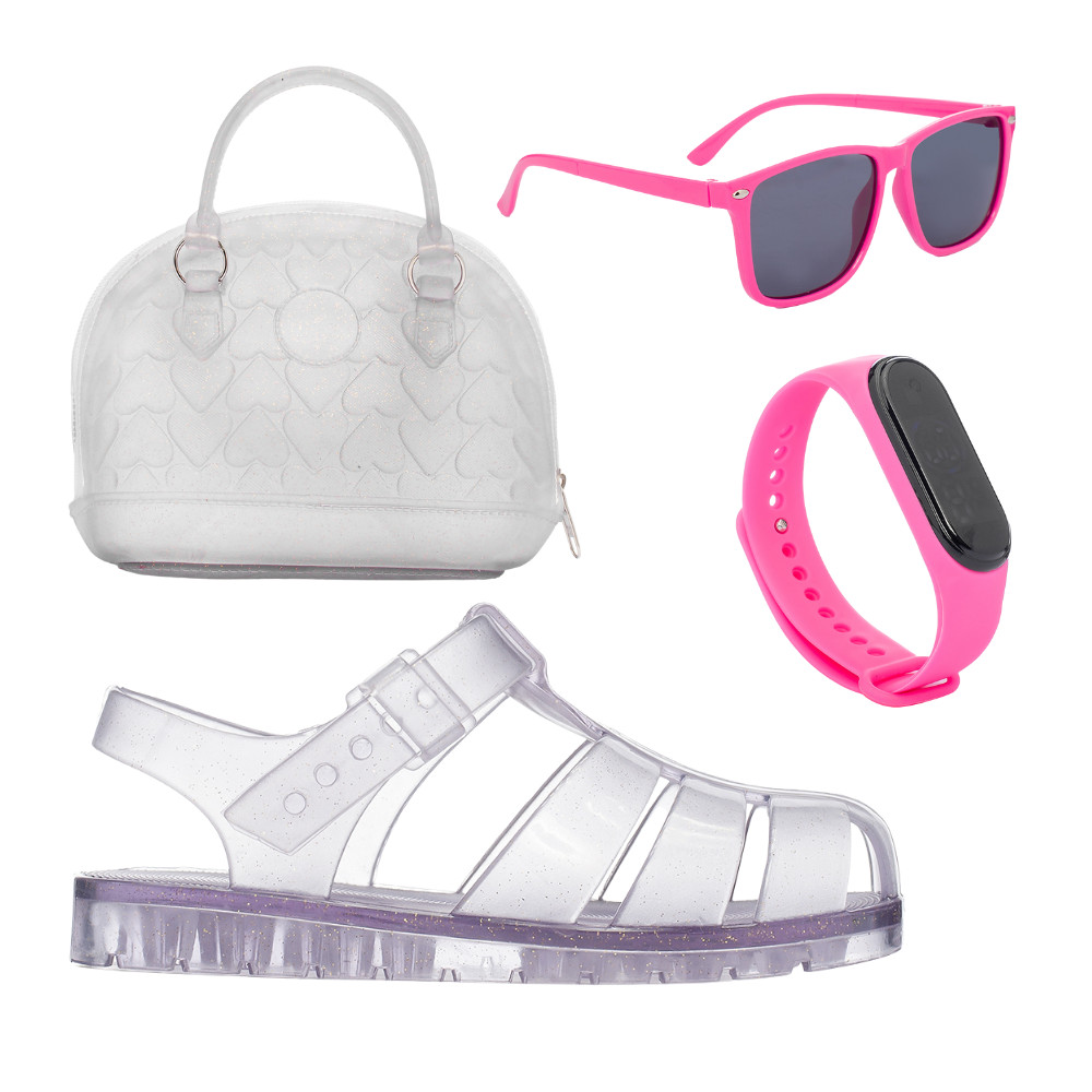 Combo Infantil Sandalia +Bolsa+Oculos+Relogio Feminino Funfy