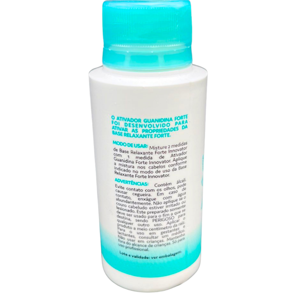 BASE RELAXANTE GUANIDINA INNOVATOR 200G DESCRIÇÃO: A Base relaxante Guanidina é mais um lançamento da Innovator, Itallian Hairtech. Foi criada para Relaxar, reduzir o volume e alisar os cabelos de maneira natural. ATIVOS: Óleo de Pistache: o pistacheiro (Pistacia vera) é originário da Ásia Central e cultivado na região mediterrânea (Irã, Turquia, Grécia) e na Califórnia (EUA). No entanto, o pistache mais famoso é encontrado na cidade de Bronte, localizada na região da Sicília (Itália). Possui características únicas de cor, aroma e sabor que o tornam especial e, por isso, requisitado em todo o mundo. Pistacia vem do grego “pistake” e significa “noz” e vera, do latim “verdadeiro”, completando o significado de “noz verdadeira”. O óleo é extraído através de prensagem mecânica e posteriormente passa por um processo de refinamento padrão. Proporciona aparência saudável e maleabilidade aos cabelos Evita a perda de hidratação dos fios e do couro cabeludo Ação nutritiva: reposição de lipídeos na fibra capilar Efeito anti-frizz e brilho radiante Alivia a irritação do couro cabeludo devido às suas propriedades anti-inflamatórias Blend de Óleos Vegetais: mix de 12 óleos preciosos obtidos a partir de nozes, sementes, ervas e frutos (Argan, Noz de Karité, Semente de Algodão, Coco, Macadâmia, Chá Verde, Camomila, Aloe, Cálamo, Mirra, Oliva e Canela). Protege os fios contra o ressecamento Proporciona nutrição avançada das camadas mais profundas da fibra capilar Disciplina e controla o frizz Blend de Aminoácidos: combinação de 18 aminoácidos provenientes de nanopartículas da Sericina, proteína que possui propriedade adesiva com alta afinidade por outras proteínas, sendo capaz de ligar-se à queratina do cabelo. Repõe a massa protéica perdida Reverte de forma efetiva os danos da fibra capilar Forma um filme protetor por efeito adesivo Harmoniza o relevo capilar Contribui para a redução de volume e alinhamento dos fios MODO DE USO: Inicialmente, realize o teste de mecha conforme descrito nas advertências. Utilize o Protetor Innovator antes de começar o procedimento para proteger todo o couro cabeludo e a pele ao redor do cabelo. Adicione em um recipiente duas partes de Base Relaxante Forte Innovator e uma parte de Ativador Guanidina Forte Innovator, misture bem e inicie a aplicação a uma distância de meio centímetro da raiz. Após o tempo de pausa indicado no teste de mecha, enxágue os cabelos com água em abundância até a retirada total do produto. Lave com o Shampoo Sem Sulfato Innovator, aplique a Hidratação Condicionante Innovator e deixe agir de 3 a 5 minutos. Enxágue. Para escovar os fios com o secador, use o Sérum Remineralizante Innovator. Advertências: Contém álcali. Evite contato com os olhos, pode causar cegueira. Em caso de contato, enxágue com água abundantemente. Não aplique se o couro cabeludo estiver irritado ou lesionado. No caso de alergia ou irritação, suspenda o uso imediatamente. Este preparado somente deve ser usado para o fim a que se destina, sendo PERIGOSO para qualquer outro uso. Aplicar o produto a meio centímetro da raiz. Não lave e não massageie o couro cabeludo antes da aplicação. Não aplique este produto sobre mechas ou cabelos descoloridos, sobre cabelos quimicamente tratados ou sobre os fios crescidos que já foram anteriormente relaxados. Usar luvas adequadas. Faça o teste em algumas mechas (os fios devem estar secos) em pontos diferentes da cabeça aplicando a mistura por todo seu comprimento. Processe os fios com as mãos e observe a resistência, elasticidade, abertura dos cachos e tempo de ação. Deixe agir até alcançar o resultado desejado e enxágue completamente. Observe a mecha em toda sua extensão. Não aplique o produto se no teste de mecha a mesma se mostrar quebradiça. Para o uso em gestantes e lactantes, consultar um médico. Não usar em crianças. Mantenha fora do alcance de crianças. Só para uso profissional. ATIVADOR GUANIDINA INNOVATOR 200G DESCRIÇÃO: Desenvolvido para ativar as propriedades da Base Relaxante Forte. ATIVOS: Glicerina: substância altamente higroscópica, que absorve água do ambiente. Confere poder umectante aos cabelos Proporciona emoliência e toque sedoso Agente de Lubricidade: resina hidrossolúvel que apresenta grande afinidade pela fibra capilar. Melhora o deslizamento durante a aplicação Favorece a formação de um filme protetor MODO DE USO:Misture 2 medidas de Base Relaxante Forte Innovator com 1 medida de Ativador Guanidina Forte Innovator. Aplique a mistura nos cabelos conforme indicado no modo de uso da Base Relaxante Forte Innovator. Advertências: Contém álcali. Evite contato com os olhos, pode causar cegueira. Em caso de contato, enxágue com água abundantemente. Não aplique se o couro cabeludo estiver irritado ou lesionado. Este preparado somente deve ser usado para o fim a que se destina, sendo PERIGOSO para qualquer outro uso. Aplicar o produto a meio centímetro da raiz. Para o uso em gestantes e lactantes, consultar um médico. Não usar em crianças.