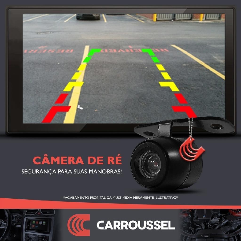 Carroussel Auto apresenta: Seu carro merece mais tecnologia com um kit multimídia+câmera+moldura! #APLICAÇÃO# - FORD FIESTA: 2003, 2004, 2005, 2006, 2007, 2008, 2009, 2010 e 2011; E versão Rocam e MPI até 2015 - FORD ECOSPORT: 2004, 2005, 2006, 2007, 2008, 2009, 2010, 2011 e 2012 Para mais detalhes sobre compatibilidade consulte a(s) foto(s) "APLICAÇÃO" Podem ser necessárias pequenas adaptações caso o painel do carro tenha deformidades devidas à ação do tempo ou à exposição ao sol. #CONTEÚDO DO KIT# - 1 Central Multimídia - 1 Câmera de Ré Borboleta com Linhas Guias Fixas - 1 Moldura 2 din para acabamento na cor Preto* ==================================================================== Essa multimídia têm função de espelhamento via cabo USB para Android e iOS, conexão AndroidAuto e CarPlay via cabo USB, também reproduz vídeos e músicas, possui Bluetooth, Rádio FM e entrada USB. E com a câmera de ré você evita acidentes executando manobras com muito mais segurança. ==================================================================== #MULTIMÍDIA# - Tela de 7" Full Touch Capacitivo de Vidro 2.5D com LCD - Diversas opções RGB de cores nos botões laterais - Algumas opções de logotipos de montadoras na inicialização - Saída para Tela Extra (Encosto de Cabeça) - Entrada para câmera de ré - Entrada USB traseira - Muda e navega por pastas do USB - Reprodução de áudio, vídeo e imagens - Conectividade Bluetooth: streaming de áudio no carro e atendimento de chamadas viva-voz pelo microfone embutido - Espelhamento via cabo de celular Android - Espelhamento via cabo de celular iOS - Conexão via cabo AndroidAuto (compatibilidade Android 10 ou superior) - Conexão via cabo ClarPlay - Rádio FM - Potência: 4 canais de 45W cada - Compatível com comando de volante. Para seu funcionamento alguns carros precisam de interface de volante a ser adquirida separadamente - Garantia de fábrica: 1 ano ==================================================================== #CÂMERA# - Imagem nítida e colorida com resolução de 420p - Ângulo de Visão: 120° vertical e 170° horizontal - Visão noturna: não tem infravermelho, mas é possível enxergar à noite dependendo da iluminação externa - Linhas guias de estacionamento fixas, ou seja, não acompanham o movimento do volante - Instalação pelo suporte borboleta - Garantia de fábrica: 90 dias ==================================================================== #OBSERVAÇÕES# - Leve esse produto para ser instalado em uma empresa especializada para evitar perder a garantia por erros na instalação - Não acompanha o chaveiro, foto meramente decorativa *É possível ocorrer alguma diferença de cor com em relação ao painel devido à ação do tempo e exposição do veículo ao sol