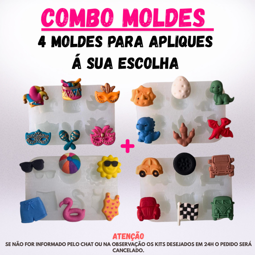 Combo Personalizado | 4 Moldes de Silicone para Apliques de Artesanato