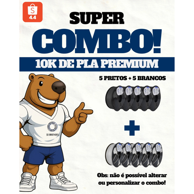 | COMBO PLA PREMIUM - 10KG BRANCO + PRETO este produto | R$ 1.060,00 | — | 5.0/5 | 7 |