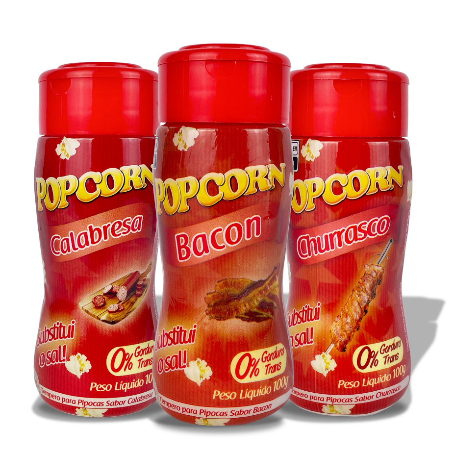 Combo Popcorn - 03 Sabores - Calabresa, Churrasco e Bacon