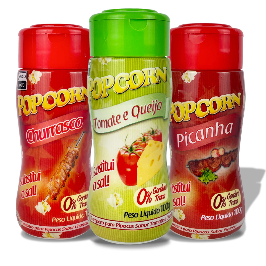 Combo Popcorn - 03 Sabores - Churrasco, Picanha e Tomate e Queijo