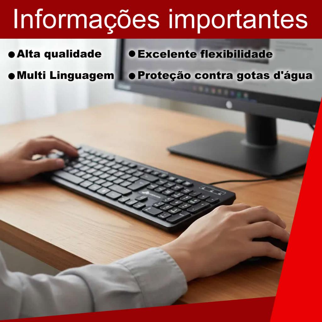 Combo Teclado E Mouse Para Computador Com Fio Usb Design Ergonômico Confort, Escritórios ou Jogos