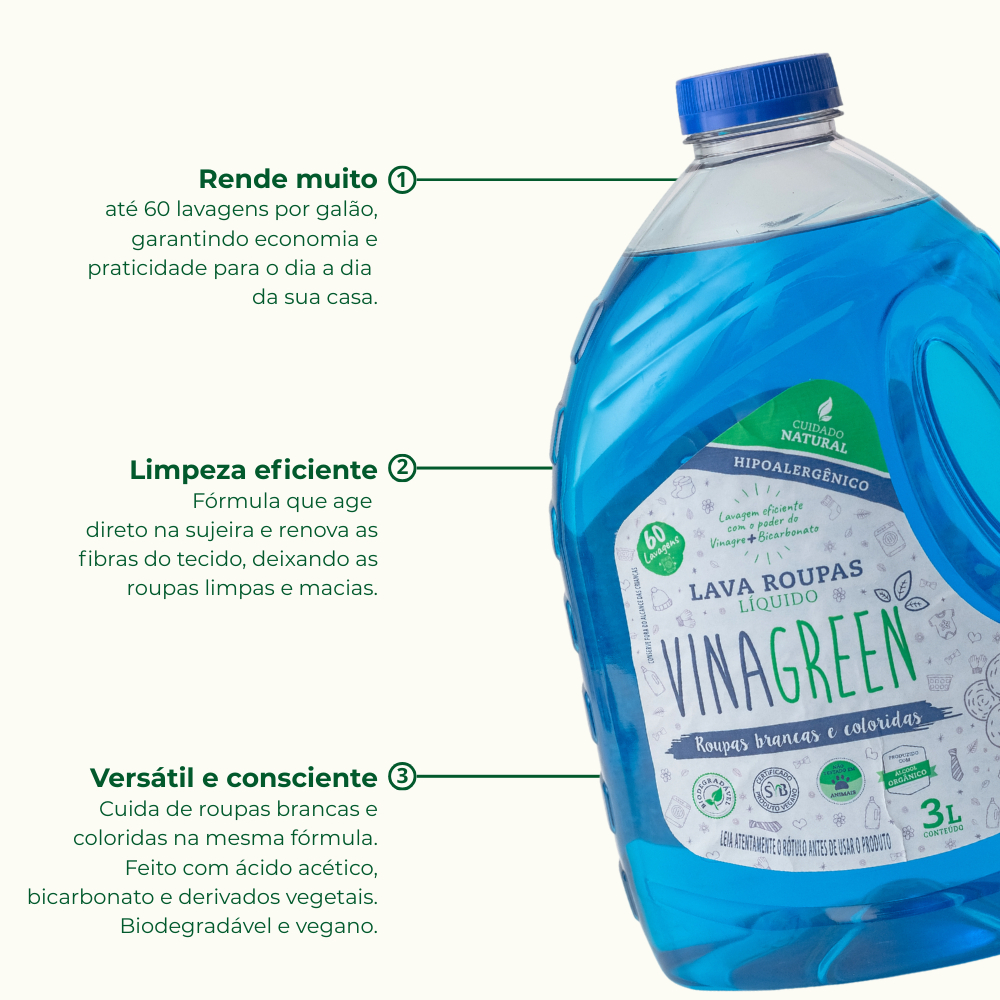 Combo Vinagreen Lava Roupas 3 l + Amaciante Concentrado de Algodão 500 ml