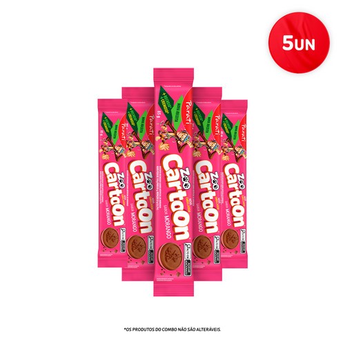 Combo Zoo Cartoon Sabor Morango 85g 5 unidades