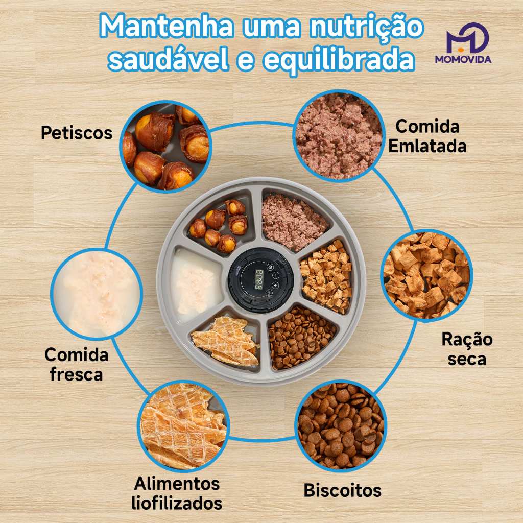 Comedouro Automático Pet Momovida Para Cachorro Cães Gato Programador Refeição Facil Ração 6 Porções