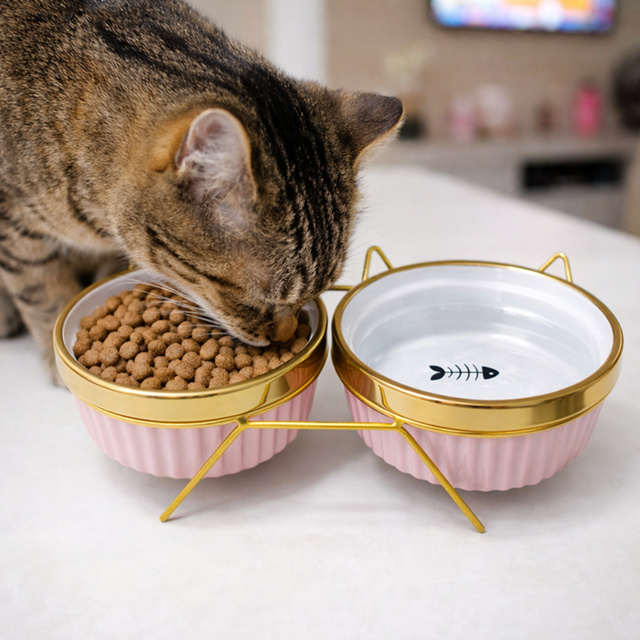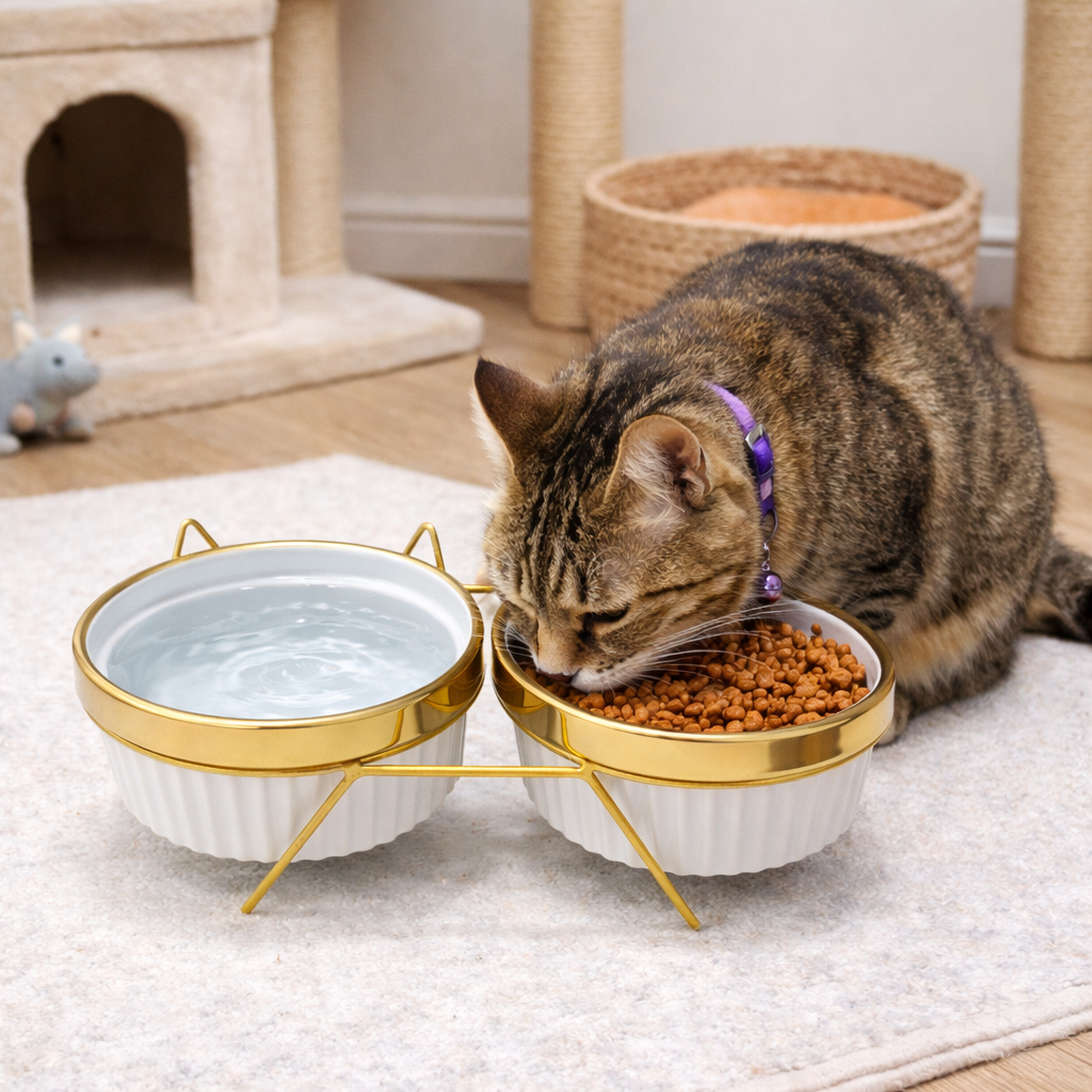 Comedouro Bebedouro duplo elevado ceramica Caes Gatos Pets persa