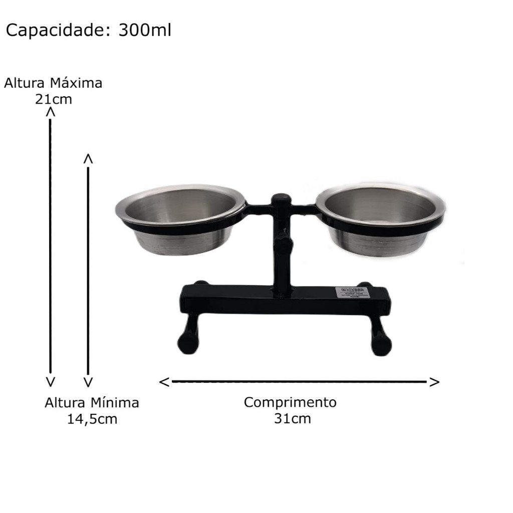 COMEDOURO DUPLO ELEVADO REGULÁVEL ALTO PARA CACHORRO O comedouro elevado é ideal para garantir ao seu pet maior conforto e saúde nas horas das refeições. O comedouro duplo é prático pois pode ser colocado comida e água ao mesmo tempo, facilitando a rotina do seu animal de estimação. Além disso, o suporte elevado regulável pode ser ajustado na altura ideal para o seu pet ter uma postura correta durante a alimentação, prevenindo problemas de saúde como digestão, refluxo e articulares. Os comedouros tem a base de aço carbono e as tigelas de alumínio, tendo as pontas emborrachas para evitar o deslizamento no seu piso. Benefícios: - Altura Ergonômica; - Com Regulagem de altura Medidas: Comedouro Elevado (PP) - MINI Capacidade: 300ml Altura Máxima: 21 cm Altura Mínima: 14,5 cm Largura: 12 cm Comprimento: 31 cm Porte: MINI E FILHOTES Peso: Até 5 kg Raças indicadas: MINI E FILHOTES DE; Poodle Toy, Yorkshire, Shih Tzu, Maltês, Lulu da Pomerânia, Pinscher, Buldogue Francês filhote, Chihuahua, Spitz Alemão, Dachshund miniatura. Uso: Ideal para cães pequenos e gatos, recomendado para ração e água em porções menores. Comedouro Elevado (P) - PEQUENO Capacidade: 900ml Altura Máxima: 29 cm Altura Mínima: 20 cm Largura: 16 cm Comprimento: 40 cm Porte: Pequeno a médio Peso: Até 12 kg Raças indicadas: PEQUENO PORTE; Buldogue Francês, Pug, Beagle pequeno, Boston Terrier, Lhasa Apso, Cocker Spaniel filhote, Dachshund standard. Uso: Indicado para cães que consomem porções maiores e gatos de porte médio. Comedouro Elevado (M) - MÉDIO Capacidade: 1200ml Altura Máxima: 35,5 cm Altura Mínima 23,5 cm Largura: 20 cm Comprimento: 44 cm Porte: Médio a grande Peso: Até 35 kg Raças indicadas: MÉDIO A GRANDE PORTE ATÉ 35KG Golden Retriever, Labrador, Pastor Alemão, Boxer, Husky Siberiano, Pitbull, Dálmata, Boiadeiro Australiano. Uso: Para cães de porte médio a grande que precisam de maior volume de ração e água. Comedouro Elevado (G) - GRANDE Capacidade: 2000ml Altura Máxima: 43,5 cm Altura Mínima: 27 cm Largura: 24 cm Comprimento: 54 Porte: Grande Peso: Acima de 35 kg Raças indicadas: GRANDE PORTE; Rottweiler, Dogue Alemão, Mastim, Fila Brasileiro, Bernese Mountain Dog, Cane Corso, São Bernardo. Uso: Para cães grandes que consomem grandes quantidades de alimento e água. -Contendo 01 base e 02 bacias - Água e Comida ao mesmo tempo; -Pintura eletrostática e acessórios em borracha. -Fabricante: Avipet As fotos são meramente ilustrativas, podendo haver pequena variação entre a foto e o produto.