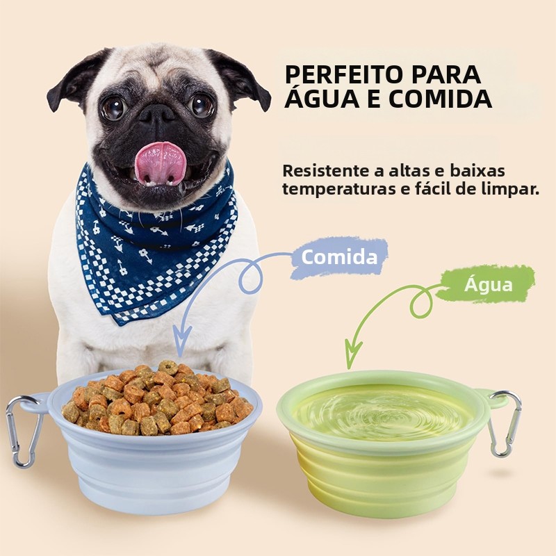 Comedouro Bebedouro Retrátil Silicone para Passeio de Cachorro Cães Gatos Pet com Mosquetão Prático