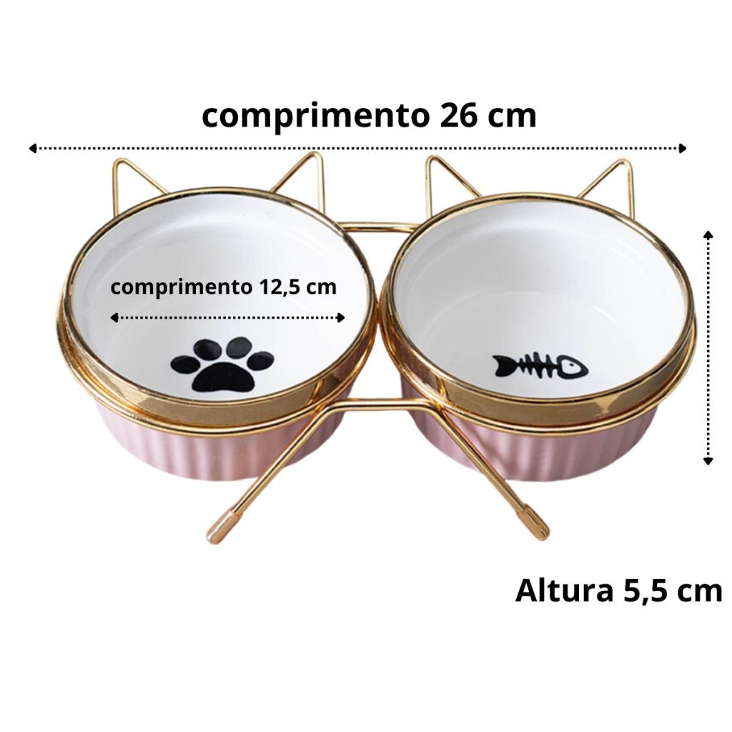 Comedouro duplo elevado ceramica Caes Gatos Pets persa