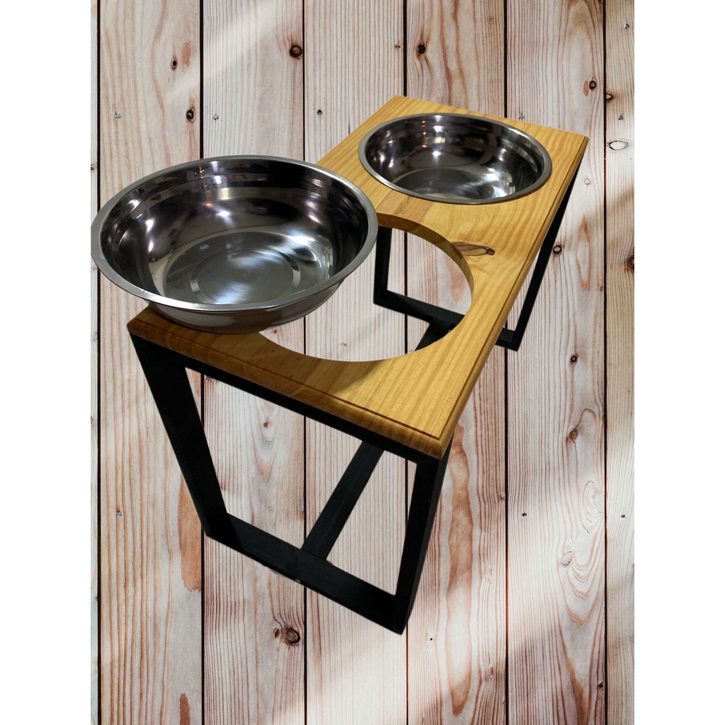 *** ATENÇÃO *** Observar as medidas do comedouro, principalmente a ALTURA, e medir seu pet, para garantir que irá servir. Como medir? Mínimo: do chão até o cotovelo Máximo: do chão até o peito ---------------------------------------------------------------------------------------------------------------------------- COMEDOURO DUPLO GG - PARA PORTE GRANDE / GIGANTE MEDIDAS Altura: 38cm Comprimento: 58cm Largura: 29,5 cm Tigelas: 2L cada, 25cm de diâmetro, 6cm de fundo ---------------------------------------------------------------------------------------------------------------------------- Peça inteira feita em madeira maciça (PINUS) * Mesa pintada com polisten verniz impregnante, com ação fungicida e inseticida, e hidrorrepelente. * Pés de madeira pintados com tinta acrílica premium, de alta durabilidade, tornando muito mais resistente. * Acompanha tigelas em inox. Pode ser usado para ração e água. A peça PODE SER MOLHADA. POR SER UM PRODUTO ARTESANAL FEITO EM MADEIRA, PODERÁ HAVER PEQUENAS DIFERENÇAS ENTRE CORES E ACABAMENTO. ----------------------------------------------------------------------------------------------------------------------------- BENEFÍCIOS DE UM COMEDOURO ELEVADO: - Altura correta para manter uma boa postura ao se alimentar. - No caso dos gatos, a tigela oferece a largura ideal para não encostar os bigodinhos, que gera desconforto para os bichanos. - Tigelas em inox, muito mais higiênica e fácil de lavar e transportar. - Não tem contato direto com o chão, evitando possíveis ataques de formigas na ração, e no caso da água, evita a umidade e fungos que se formam em baixo da tigela. ------------------------------------------------------------------------------------------------------------------------------