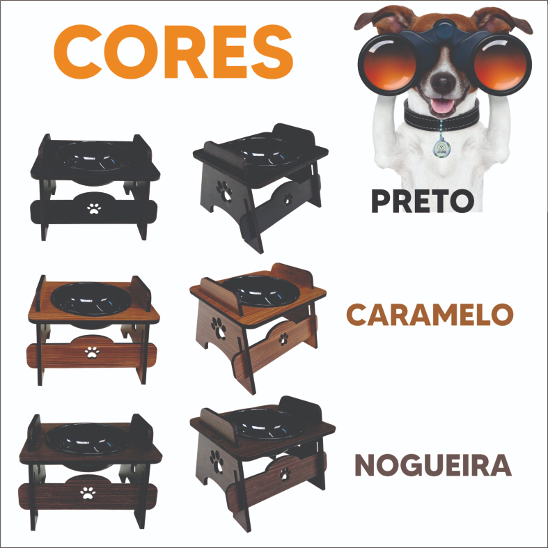 Comedouro Elevado Inclinável Pet Ração e Água Para Cachorros e Gatos em MDF 6MM Com 1 ou 2 Potes Tigelas