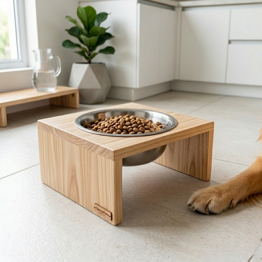 Comedouro Elevado Individual Madeira P/ Cães Porte Médio