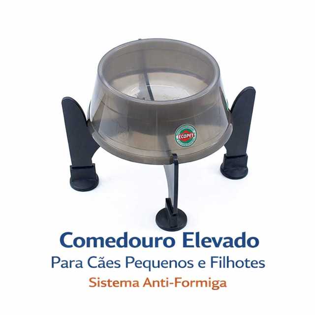 Comedouro Elevado Para Cães Pequenos e Filhotes 300ml 15cm Anti-Formiga Postura Correta Cor Fumê