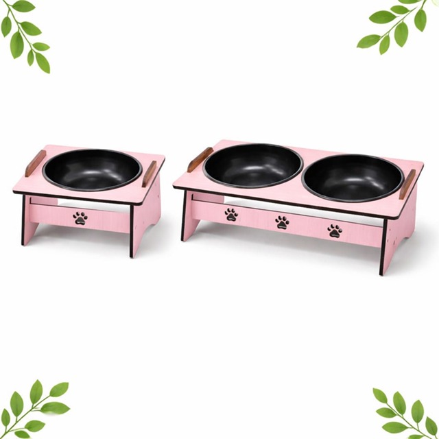 Comedouro Elevado Pet MDF e Bebedouro Gato e Cachorro com Tigela 400ml rosa, azul e madeirado